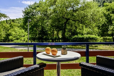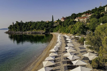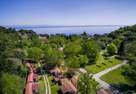 The resort is located on the Opatija Riviera directly by the sea, just a few steps away from a 1000 m long pebble beach. Situated between the coastal towns of Lovran and Mošćenička Draga, in the midst of lush Mediterranean countryside at the foot of Mount Učka, the resort offers everything you need for a relaxing beach vacation. In addition to comfortable mobile homes, it also offers camping pitches, apartments and rooms.