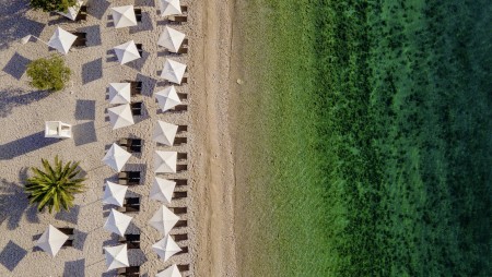 Beach: You can reach the long pebble beach via the road and promenade. Sun loungers and parasols for a fee. Water playground for children and adults, water sports such as paragliding, diving and canoeing are offered on the beach for a fee.