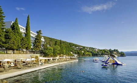 The elegant and comfortably furnished hotel is only separated from the sea by the Lungomare promenade. Particularly popular with families, this modern hotel offers a relaxing vacation in a relaxed atmosphere. The center of the small resort of Ičići is only 500 m away, and the fashionable seaside resort of Opatija is about 2000 m away.