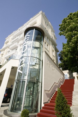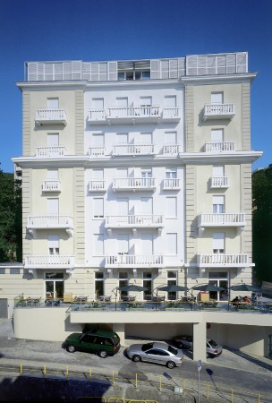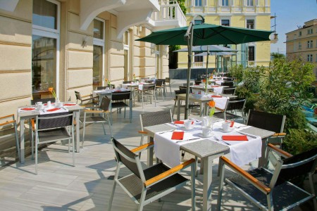 The hotel is located near the center of Opatija. The nearby historic town center with its cozy coffee houses and the long promenade along the coast invite you to take a stroll. In the immediate vicinity of the hotel you will find a Thalasso wellness center. The idyllic Angiolina Park, with its exotic plants, is just a few minutes' walk from the hotel and invites you to stroll and linger.