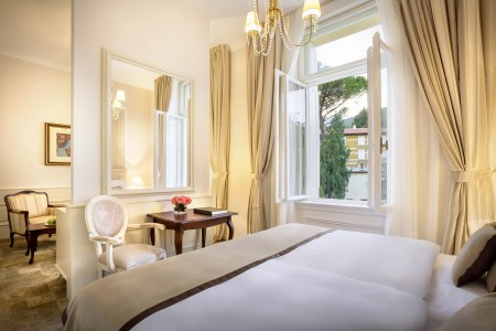 24 rooms: approx. 39-48 m², spacious and comfortably furnished with double bed (2x 100x200 cm), minibar, telephone, satellite TV, air conditioning, WiFi Internet (free of charge), bathroom/WC. On arrival 1 bottle of water in the room.