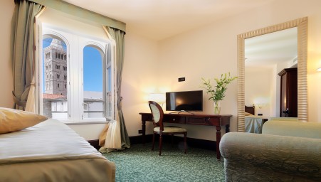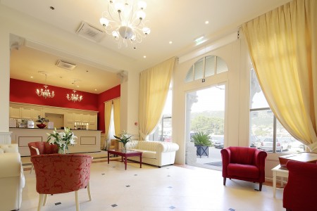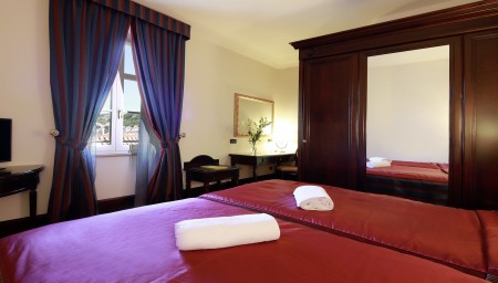30 rooms: Elegant and furnished with exclusive materials, with air conditioning, Smart LED satellite TV, telephone, WiFi internet (free of charge), minibar, safe, bathroom/WC with hairdryer, bathrobe and slippers. Crib available on request (for a fee, € 15 per night).