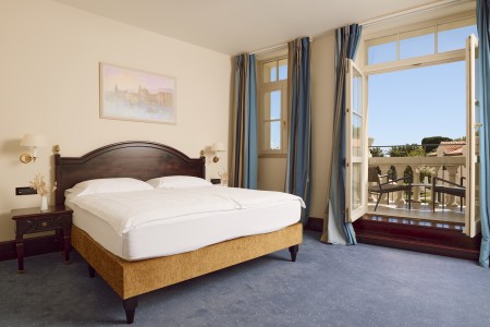 Superior room: approx. 23-26 m², king-size bed (180 x 200 cm), balcony with sea view.
