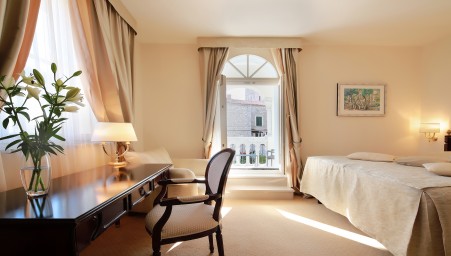 This small hotel is located on the waterfront in the center of Rab, adjacent to the Dorka Town Park. The charming building originally dates back to 1924 and was recently renovated with great attention to detail.