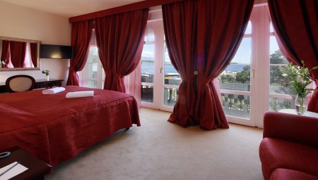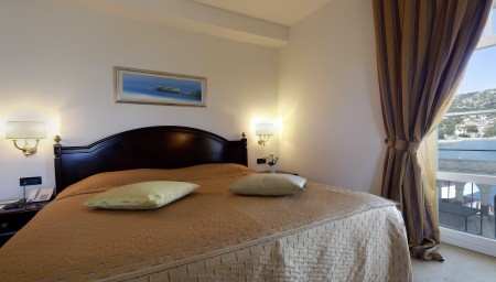Deluxe room: 24-32 m², king-size bed (180 x 200 cm), balcony, sea and city view.