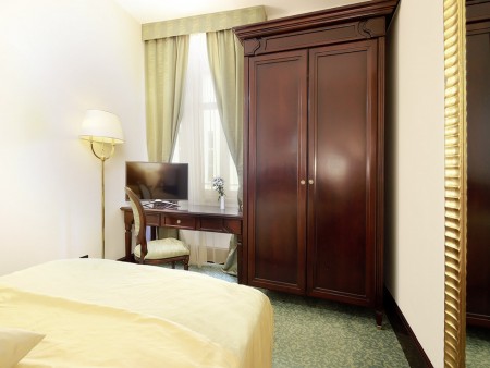 Standard room: approx. 23-26 m², king-size bed (180 x 200 cm) or two single beds (90 x 200 cm each) with a view of the old town or the park.