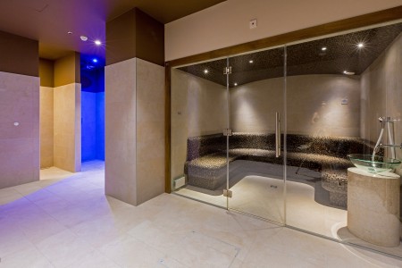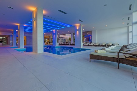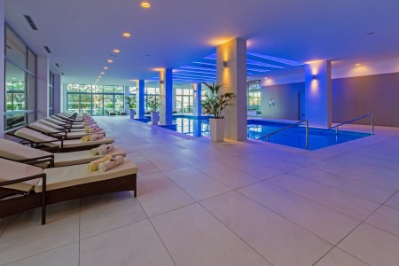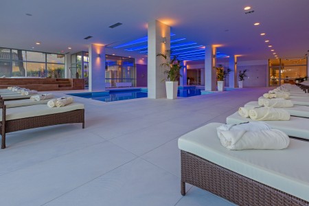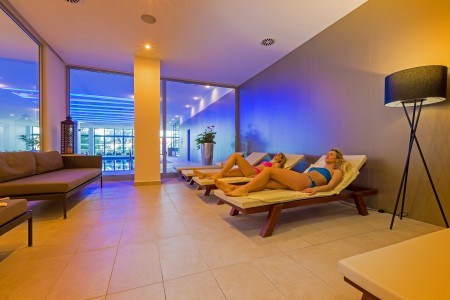 Wellness-Center: "Katarina Spa": heated pool, hydromassage pool, Finnish sauna, bio-sauna, Turkish steam bath, heated benches and loungers for relaxing, relaxation zone with views of the Mediterranean garden.
