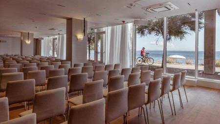 Facilities: Restaurant, poolside snack bar, lobby bar with terrace, newsagent and souvenir store. Two seawater swimming pools with large sun terraces, whirlpool, sun loungers and parasols (free of charge, limited number). Heated indoor seawater pool and whirlpool. Entertainment programs for children (5-12 years) and adults from mid-June to September, in July/August also evening entertainment with live music. Free parking at the hotel, hotel garage for a fee (€ 10 per day). Internet corner available (free of charge), WiFi internet available throughout the hotel (free of charge).