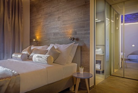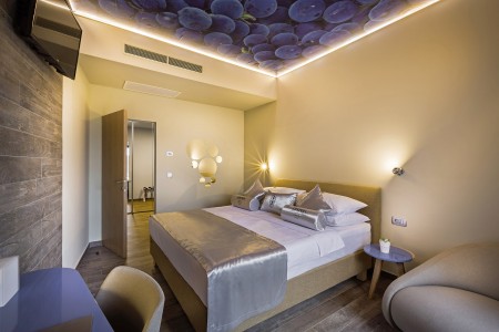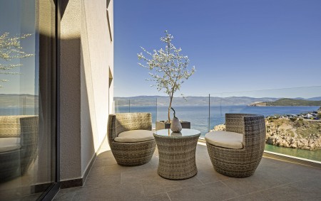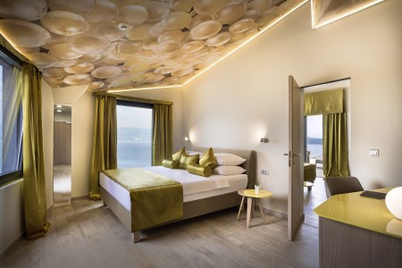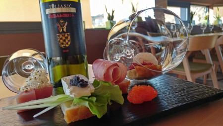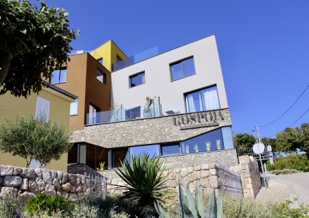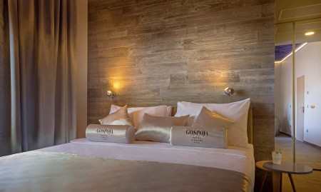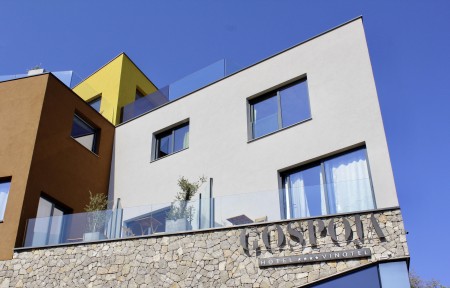 The modern Vinotel Gospoja, run by the Toljanić winemaking family, is located in a small bay directly above the sea. Behind the modern façade lies a love for a centuries-old tradition - the tradition of winegrowing. In addition to modern and extremely tastefully furnished rooms and apartments, which are lovingly named after autochthonous Croatian grape varieties, a spacious wellness area and one of the best white wines in Croatia await you. Žlahtina Toljanić is the first quality wine to bear the "Croatian product of origin" seal of approval. The wine is recognized in Croatia as well as in the EU and the USA and is the most awarded Žlahtina in the past 20 years. It is light and drinkable, of a fine clarity, with a soft greenish gold color and smells of the freshness of the breeze that blows from the vineyards of Vrbnik during the summer heat. Visit the Toljanić family in Vrbnik and taste it for yourself.
