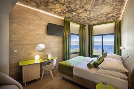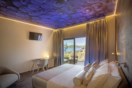 Deluxe double room: approx. 29-32 m², one additional bed, large balcony or terrace with sea view and private whirlpool.