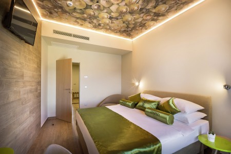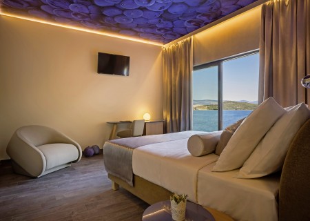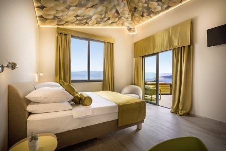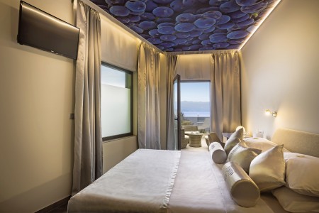Deluxe family room: approx. 42 m², two bedrooms, one bathroom, balcony or terrace with sea view and private whirlpool.