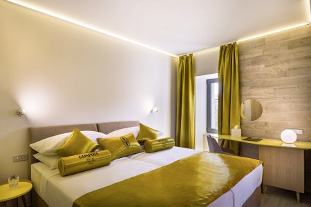 22 rooms: modern and comfortably furnished, with air conditioning, satellite TV, telephone, WiFi internet (free of charge), safe, minibar and shower/WC. Baby crib available on request (for a fee, €18 per day).