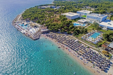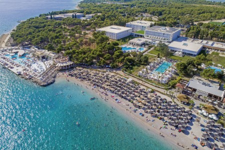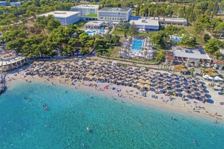 Sport & activities The extensive resort is located on a peninsula and consists of five hotels, the Villas Kornati apartments, a campsite on the edge of the resort and a small marina. There are numerous attractions for holidaymakers - "Dalmatian village" on the beach, 5 à la carte restaurants, cafés and bars, supermarket and wellness center. Miniclub for children from 4-12 years (4 hours per day), "Andrija Summer Kids Club" with all-day entertainment program for children from 4-12 years (free for guests of Hotel Andrija, for a fee for guests of other hotels), sports day program for adults, evening program with shows, folklore, dance and entertainment. Disco bar on the beach. Three clay tennis courts (two of which are floodlit), mini golf, volleyball. Aquapark with water slides, adventure minigolf and numerous other attractions - admission for a fee.