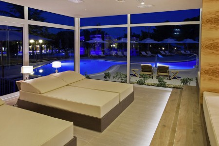 Wellness-Center: The wellness center is located in an air-conditioned hall overlooking the sea at the Hotel Ivan - six pools on different levels, two with seawater (water temperature 28°C, water depth 1.20 m) and four with fresh water (water temperature 30°C, water depth 0.90 m). Massage jets, fountains and waterfalls as well as sun loungers round off the bathing experience. In addition, various massage programs (hand and reflex massage, lymphatic drainage, aroma and hydro massage...), beauty program (facial care and massage, manicure, pedicure...), sauna, Turkish steam bath, fitness center. Perfumery, bar, atrium with sun terrace. Access and services against payment - day tickets for use of the pools and sauna available (against payment).