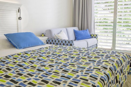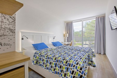 Sofa double room: approx. 26 m², with double bed or two single beds, additional sofa bed (140 x 190 cm) for two children up to 11.99 years, French balcony.
