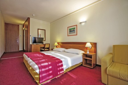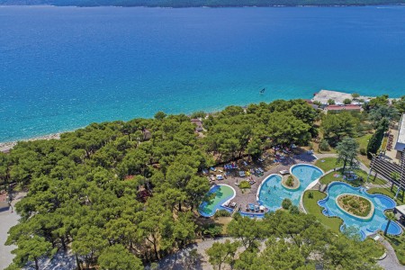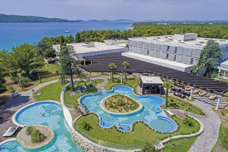 Sport & activities The extensive resort is located on a peninsula and consists of five hotels, the Villas Kornati apartments, a campsite on the edge of the resort and a small marina. There are numerous attractions for holidaymakers - "Dalmatian village" on the beach, 5 à la carte restaurants, cafés and bars, supermarket and wellness center. Miniclub for children from 4-12 years (4 hours per day), "Andrija Summer Kids Club" with all-day entertainment program for children from 4-12 years (free for guests of Hotel Andrija, for a fee for guests of other hotels), sports day program for adults, evening program with shows, folklore, dance and entertainment. Disco bar on the beach. Three clay tennis courts (two of which are floodlit), mini golf, volleyball. Aquapark with water slides, adventure minigolf and numerous other attractions - admission for a fee.