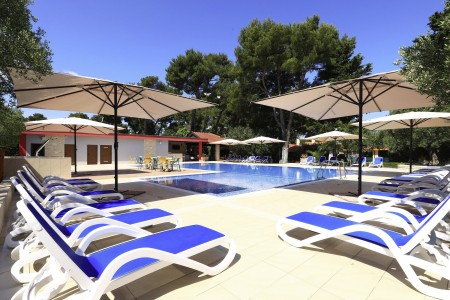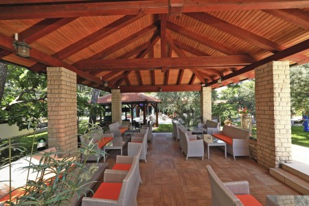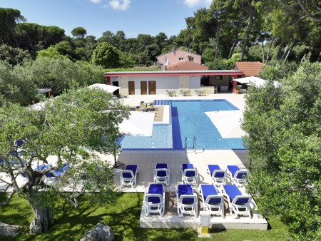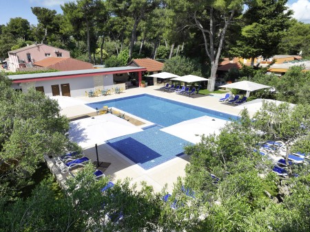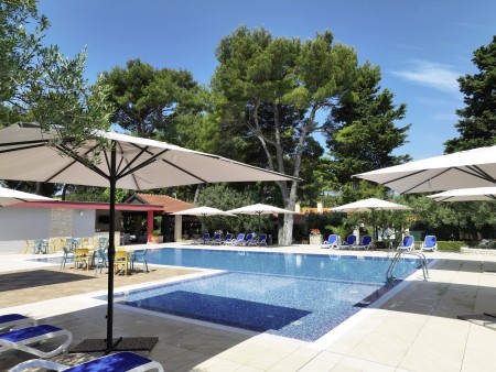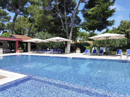 Facilities: Reception, restaurant, café terrace, swimming pool with sun terrace, sun loungers and parasols (limited number, included) and pool bar, children's playground. Video-monitored parking lot at the hotel (for a fee, € 10 per day). WiFi internet available throughout the hotel (free of charge).
