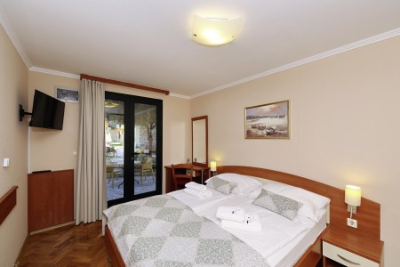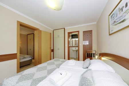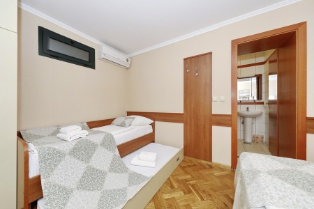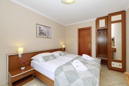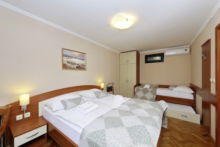 Beach: The pebbly Dražica beach, surrounded by pine trees, is approx. 150 m away via the promenade. Sun loungers and parasols for a fee, pedal boat, canoe and scooter rental. Cafés and restaurants nearby.