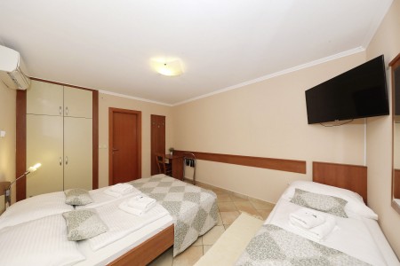 Triple room: approx. 19 m², with double bed (160x200 cm), single bed and pull-out single bed (80x200 cm each).