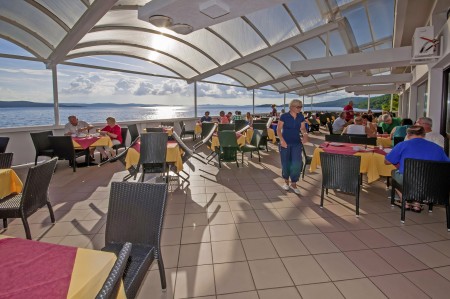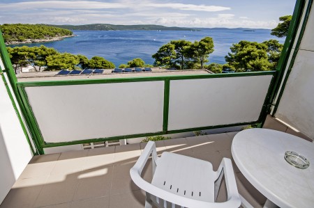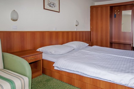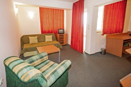 18 family rooms at Hotel Mirta***: one double room, living room with sofa bed, satellite TV, air conditioning, WiFi internet (free of charge), fridge, shower/WC and balcony.