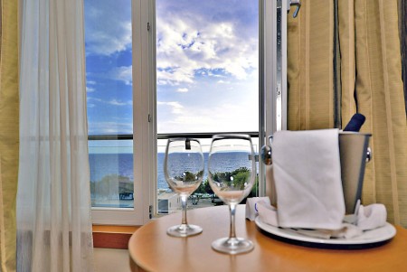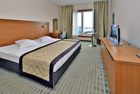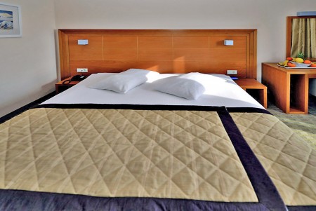96 rooms: approx. 32-34 m², comfortably furnished with air conditioning, minibar, safe, telephone, WiFi internet (free of charge), satellite TV, bathroom/WC. Can also be booked facing the sea, with balcony facing the park or with balcony facing the sea. Baby crib available on request (free of charge).
