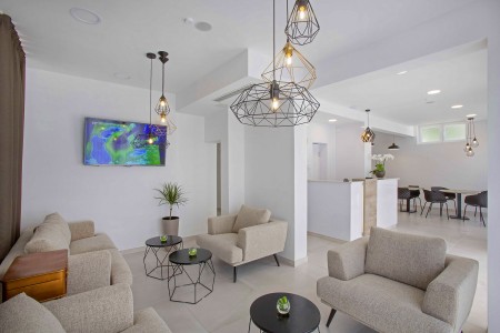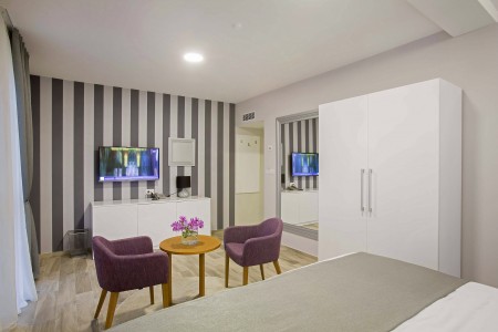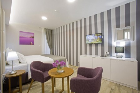 This small and comfortable hotel is centrally located, just 300 meters from the old town and 100 meters from the beach. The modern and stylish interior is decorated in white, gray and purple. The lifestyle hotel offers 18 tastefully furnished rooms with the latest amenities.