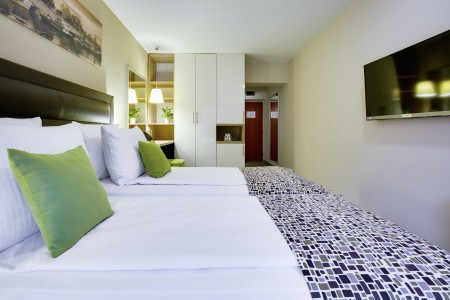 305 rooms: modern furnishings with air conditioning, LCD TV, telephone, WiFi internet (free of charge), safe, fridge/minibar (refill on request, for a fee), bath or shower/WC. Baby crib available on request (for a fee, € 5 per day).
