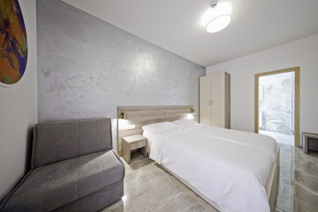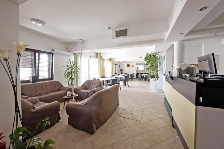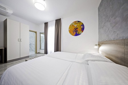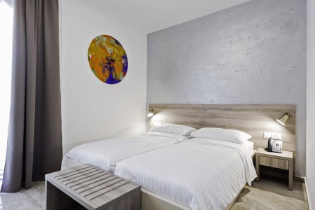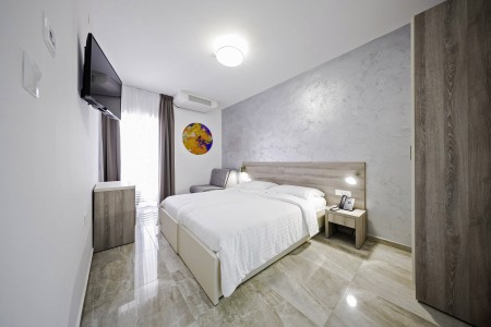 19 rooms: modern and comfortably furnished, all rooms and suites offer LCD satellite TV, telephone, air conditioning, safe, mini-fridge, WiFi internet (free of charge), bathroom with walk-in shower and WC, balcony. Baby crib available on request (for a fee; €10 per day).