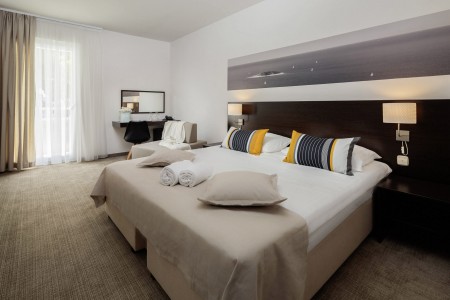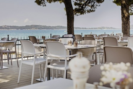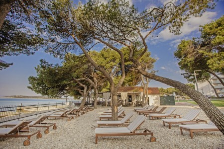 The small but exquisite resort consists of two modern buildings and is located on a peninsula, harmoniously embedded in a well-tended garden with shady pine trees. Gourmets are spoiled with culinary delights in the restaurant "La Belle Vie" right by the sea. The charming old town of Vodice with its boutiques, bars, restaurants and entertainment venues is just a few minutes' walk away.