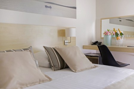 Classic double room: approx. 18 m², can be booked either facing the sea (side sea view) or with direct sea view.