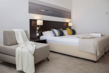 119 rooms: modern and comfortably furnished with double bed, LCD satellite TV, air conditioning, telephone, WiFi internet (free of charge), safe, minibar, small desk, shower/WC (with hairdryer) and balcony. Baby crib available free of charge on request.