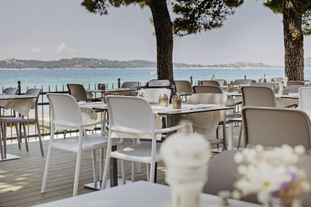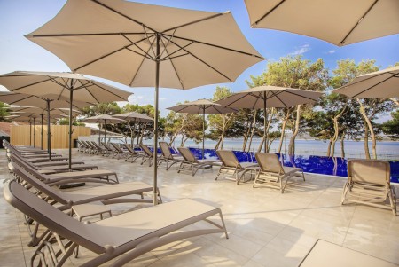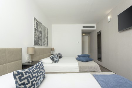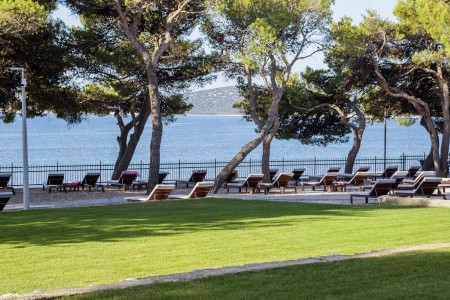 Beach: The rocky beach with concrete sunbathing areas is just a few steps away. The gently sloping pebble beach "Plava Beach" with sun lounger and parasol hire is around 250 m away.
