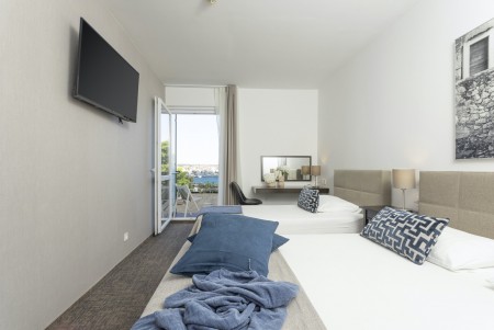 Superior double room: approx. 23 m², also with pull-out sofa (90x190 cm), balcony facing the sea.