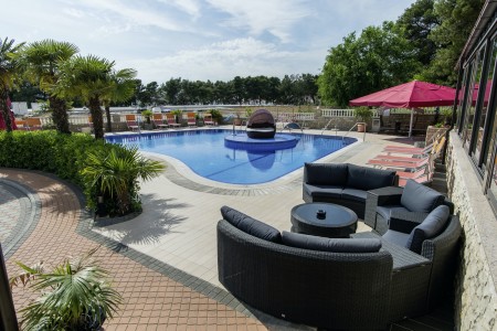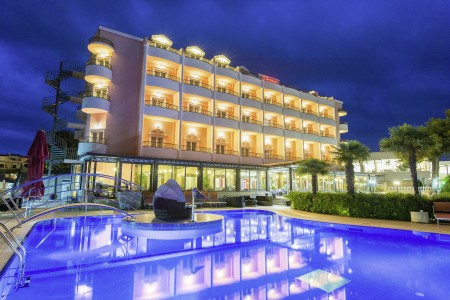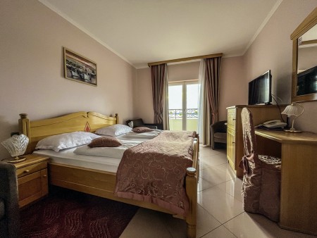 Facilities: 24-hour reception, hotel restaurant with terrace, room service, freshwater swimming pool with pool bar and sun terrace, sun loungers and parasols (free of charge, limited number). Parking available in the garage with video surveillance (for a fee, approx. €15 per day) or in front of the hotel (for a fee, €9 per day). WiFi internet available throughout the hotel (free of charge).