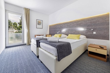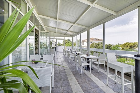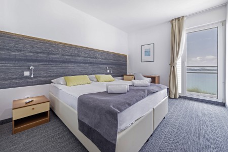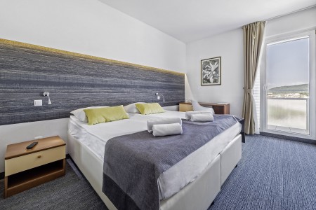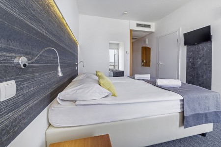 129 rooms in the main building: approx. 18-21 m², comfortably furnished, with satellite TV, air conditioning, telephone, WiFi internet (free of charge), minibar, safe, shower/WC and balcony. Can also be booked facing the sea or with sea view. Baby crib available on request (free of charge).