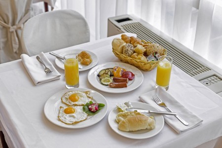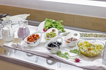 Catering: Breakfast buffet. Half board PLUS with evening buffet or full board PLUS with lunch and evening buffet bookable for an additional charge.