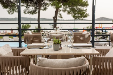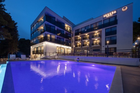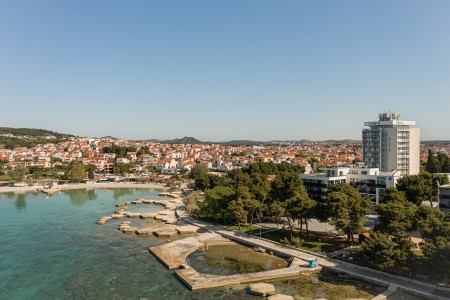 Newly opened in 2024, the hotel is located directly on the Punta peninsula, just a few meters from the sea. After a short walk along the adjacent promenade, you can reach the lively marina of Vodice.