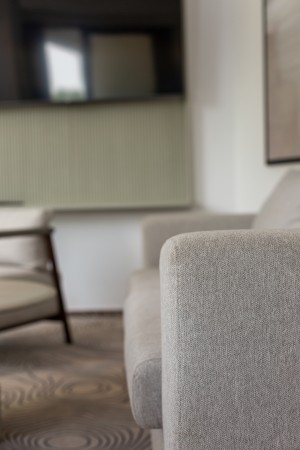 Family suite: approx. 41-48 m², double bed and separate living area with pull-out sofa and view of the park.