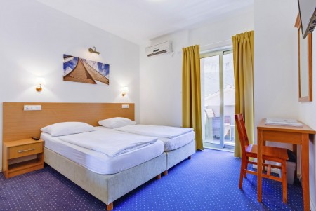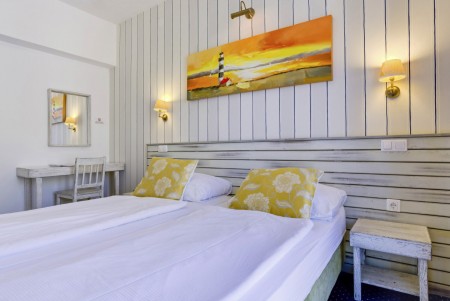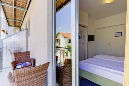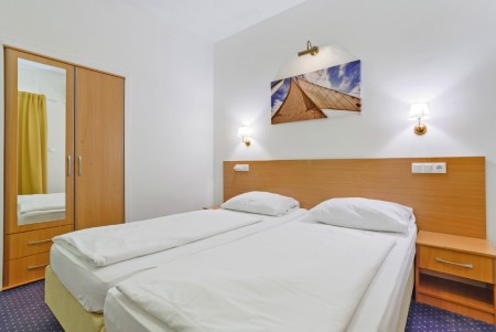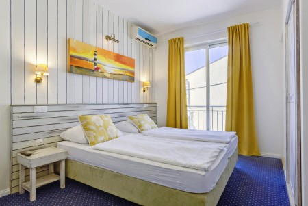 Standard family room: approx. 18-20 m², double bed or two single beds and additional bunk bed or sofa bed for two people, mini-fridge, balcony.