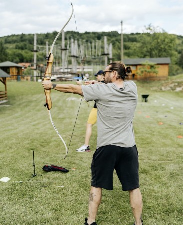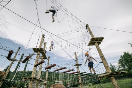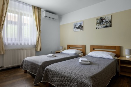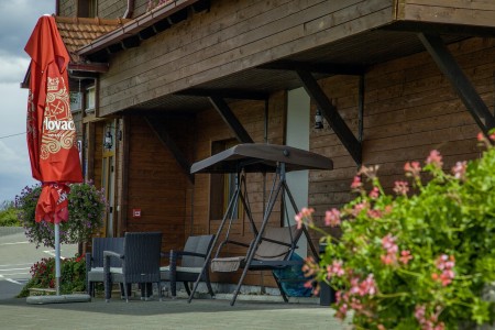 Facilities: Air-conditioned restaurant in the main building, swimming pool (12 x 5.5 m), children's playground. A newly created adrenaline park with climbing garden, paintball, airsoft, archery, zipline, karts and tomahawk throwing are available for a fee. Badminton and mountain bikes can be used free of charge. The property also has a barbecue pavilion with accessories, which can be used by arrangement and for a fee (approx. €20).