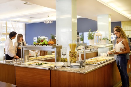 Facilities: Buffet restaurant with terrace, aperitif bar, hairdressing salon, fitness center, freshwater swimming pool with sun terrace, sun loungers and parasols (free of charge, limited number). In the period 01.06.-01.09. (3x per week) evening entertainment program with music. Free parking for hotel guests. Internet corner available (free of charge), WiFi internet available in the lobby area (free of charge).