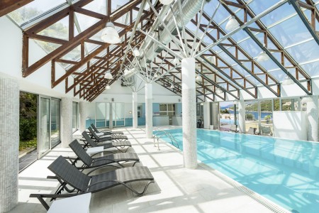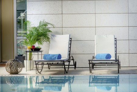 Wellness-Center: On two floors, the wellness and spa area offers a steam bath, infrared sauna, relaxation room, fitness room and two whirlpools as well as an outdoor pool and an indoor pool. Relaxing massages and various beauty treatments are also on offer.