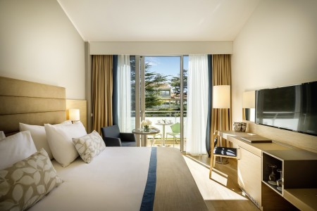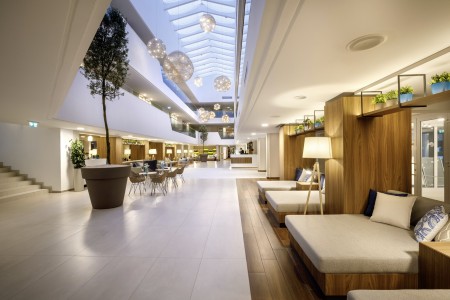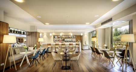 308 rooms: approx. 24-28 m², modern furnishings with air conditioning, heating, satellite TV, telephone, WiFi internet (free of charge), minibar, safe and bath or shower/WC. Optionally bookable with balcony/terrace facing the park or the sea.