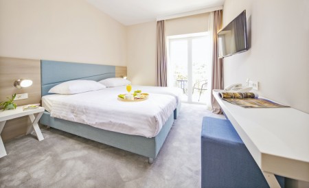 182 rooms: in five buildings, modern and comfortably furnished, with satellite TV, air conditioning, telephone, WiFi internet (free of charge), minibar, safe, bath or shower/WC, balcony. Baby crib available free of charge on request.