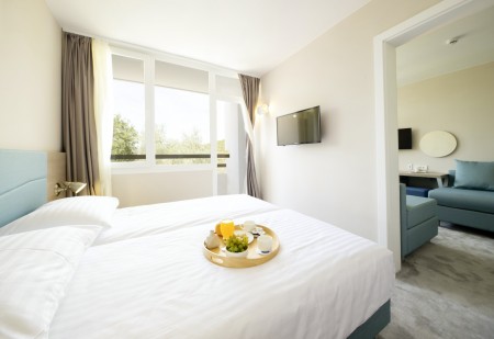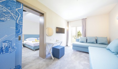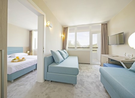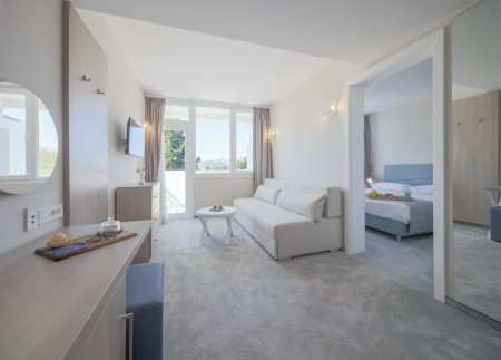 Superior Suite: approx. 28 m², one bedroom with two single beds, living room with sofa bed for 2 children up to 9.99 years, bathroom/WC, balcony.