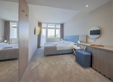 Family room superior: approx. 31 m², one bedroom with double bed, one bedroom with two single beds (90x200 cm each), two bathrooms, balcony.
