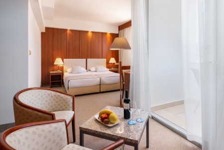Junior Suite: approx. 34-38 m², with double bed or two single beds, living area with additional sofa bed, balcony or loggia on the park side.