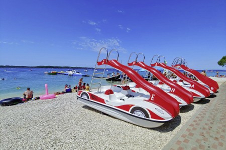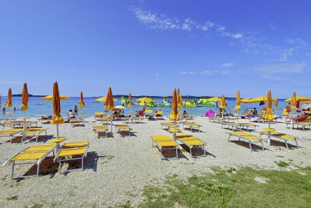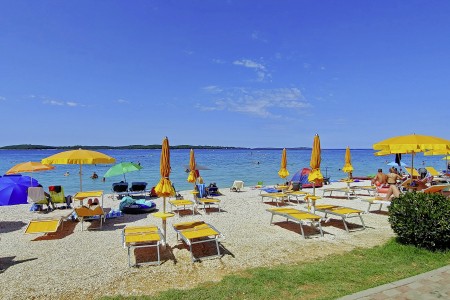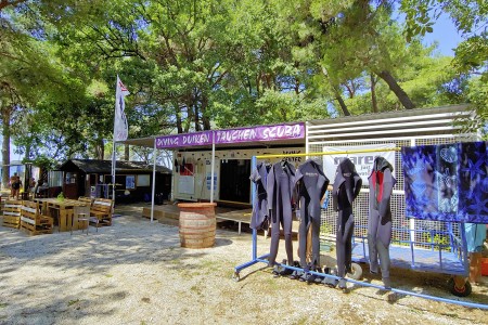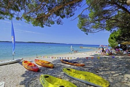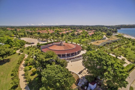 The extensive vacation complex consists of a campsite, a small hotel, apartments and mobile homes. It is located around 5 km from Pula, directly by the sea, with a view of the Brijuni Islands National Park.