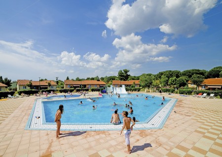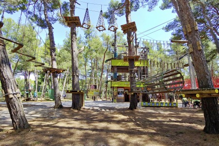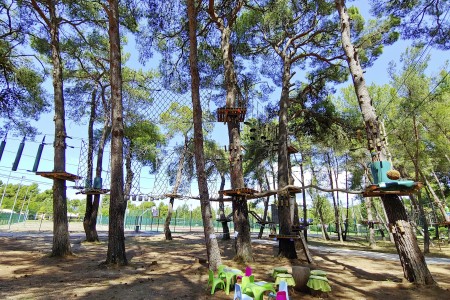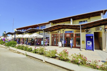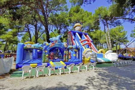 Facilities: Central reception, restaurants, bars, snack bars, sports bar near the campsite (music until midnight in high season), ice cream parlor, magazine and souvenir store, small shopping center with various stores, supermarket and pizzeria. Amusement arcade, hairdressing salon, ambulance, massage, laundry, children's playground, adrenaline park, three freshwater swimming pools with sun loungers (included in the price, limited number). The resort also has around 15 boat moorings (free of charge, cannot be reserved). WiFi internet available (free of charge). Entertainment program for young and old.
