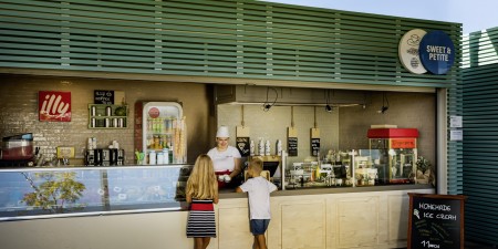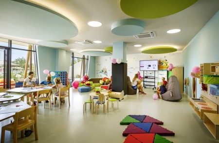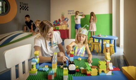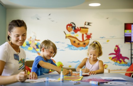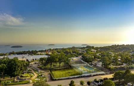 Sport: Sports center with multi-purpose playground, mini golf, beach volleyball, bike rental, various sports programs such as aquarobics, aerobics, outdoor workout, various water sports and boat rental.